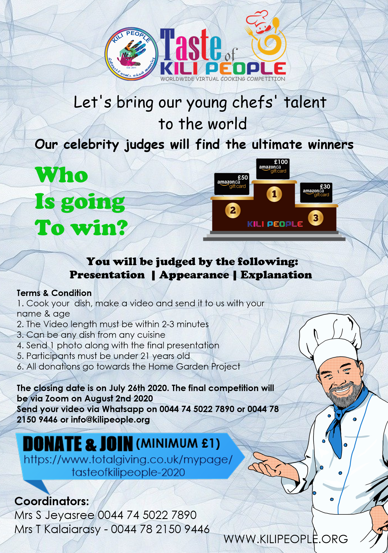 A minimum donation of £1 is needed to take part in the competition.